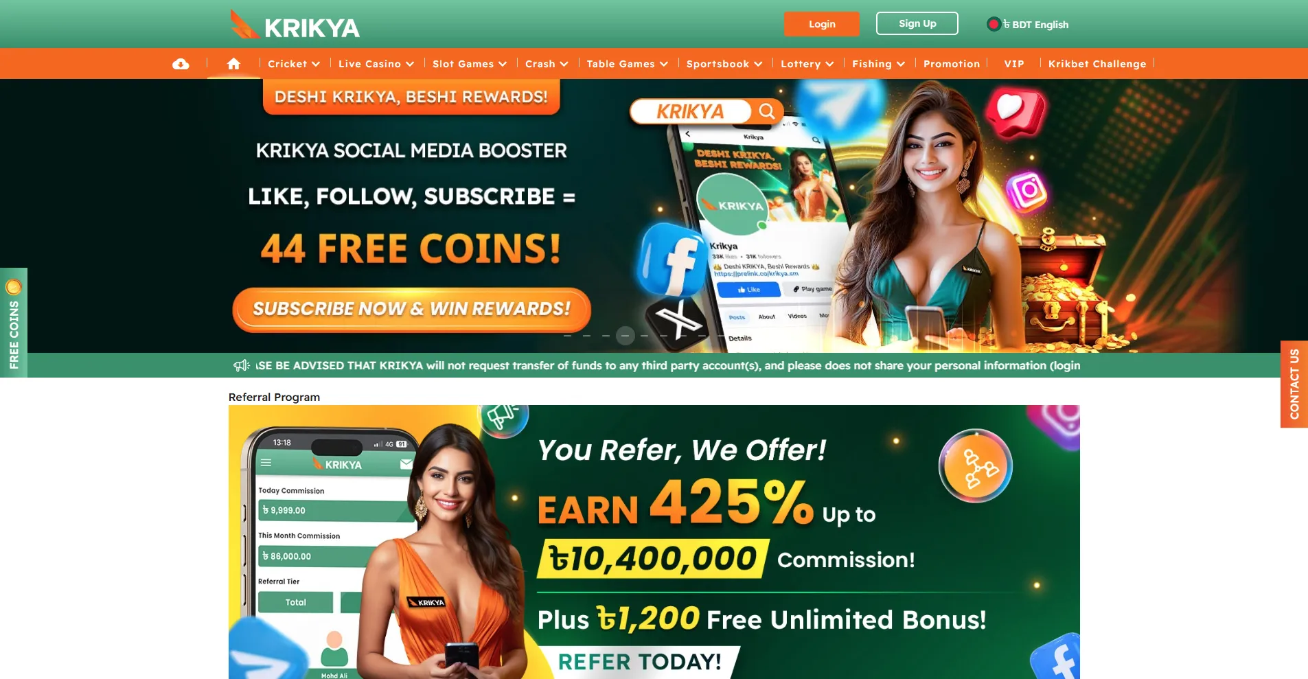 Joining the Krikya club through its affiliate program gives users a real opportunity to generate ongoing income. By referring active new players, affiliates earn a percentage of their referrals' deposits.